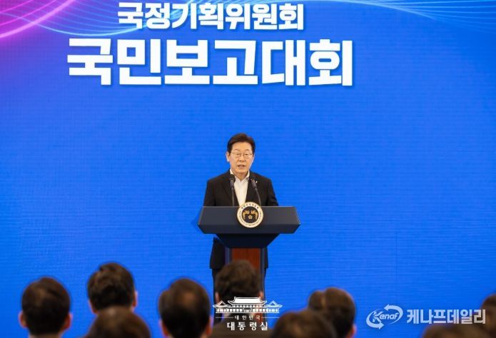 이 대통령은 이날 청와대 영빈관에서 열린 국정기획위원회 국민보고대회에 참석해 "오늘 국정기획위가 만든 대한민국 향후 5년의 설계도를 보여드리게 된다"며 이같이 말했다.