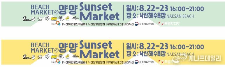 케나프데일리 이은성 기자 | 양양군이 지난 7월말 낙산해변 비치마켓 & 불꽃쇼를 개최한데 이어 8월 22일부터 8월23일까지 이틀간 양양 낙산해변에서 ‘낙산해변 썬셋마켓’ 을 개최한다.