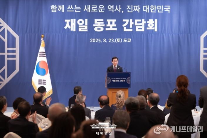 케나프데일리 이은성 기자 | 23일 일본을 방문한 이재명 대통령은 재일동포들을 만난 자리에서 "흔들림 없이 두 나라의 가교 역할을 해 주고 계신 여러분이 계시기 때문에 앞으로도 한국과 일본 양국이 더욱 두터운 신뢰에 기반해 더 큰 협력을 이루어낼 수 있다고 확신한다"고 말했다.