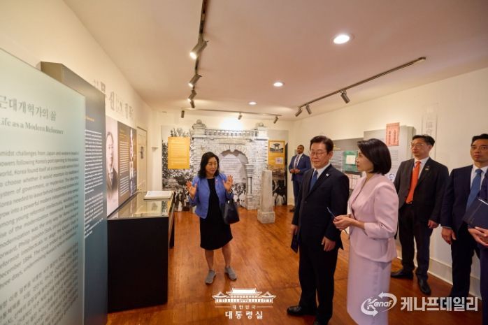 케나프데일리 이은성 기자 | 이재명 대통령과 김혜경 여사는 27일 미국 필라델피아에 있는 서재필기념관(서재필기념재단 이사장 최정수)을 방문하여 기념관 시설을 둘러보고 재단 관계자들을 격려했다.