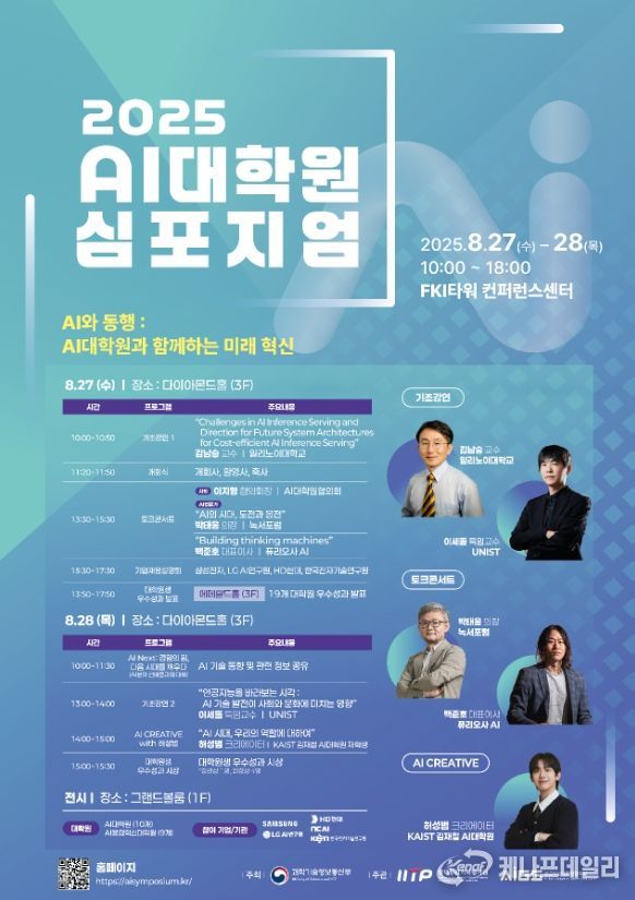 한편, 오늘 간담회가 열린 2025 인공지능 대학원 학술대회(심포지엄)는 “인공 지능과 동행 : 인공 지능 대학원과 함께하는 미래 혁신”이라는 주제로 8.27(수)∼28(목) 이틀간 개최된다. 과기정통부가 주최하고, (사)인공지능대학원협의회, 정보통신기획평가원이 공동 주관한다.