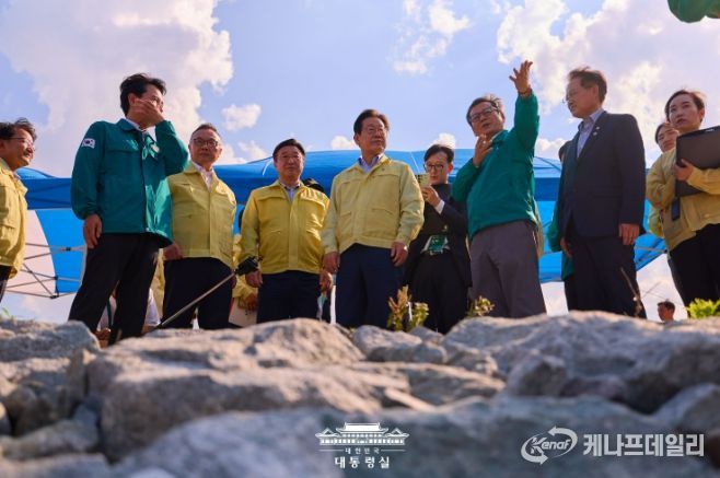 케나프데일리 이은성 기자 | 이재명 대통령은 30일 오후 가뭄으로 생활용수가 제한급수되고 있는 강원특별자치도 강릉시를 찾았다. 먼저 이대통령은 강릉지역 주요 상수원인 오봉저수지를 찾아 현장을 점검하고 주민 불편을 청취했습니다. 이대통령은 관계부처에 즉각적인 재난사태 선포를 지시하고 강릉 가뭄지역에 대한 국가소방동원령 발령도 추가로 지시했다.