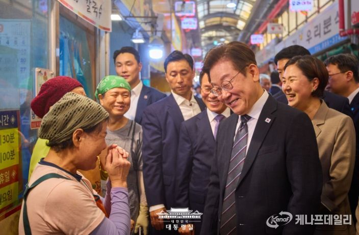 케나프데일리 이은성 기자 | 이재명 대통령은 'K-바이오, 혁신에 속도를 더하다' 토론회 개최 이후 인천 미추홀구에 위치한 용현시장을 깜짝 방문했다.