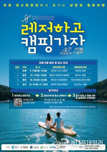케나프데일리 이은성 기자 | 강원관광재단과 호수문화관광권역은 오는 9월부터 11월까지 ‘레저하고 캠핑가자’ 프로그램을 운영한다.