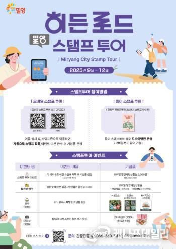 케나프데일리 이은성 기자 | 경남 밀양시는 12월 말까지 밀양을 방문하는 관광객을 대상으로 ‘2025 밀양 히든 로드 스탬프 투어’를 운영한다고 8일 밝혔다.