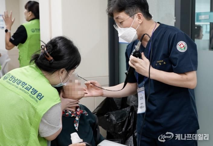 전남대병원 의료진 30여 명은 내과, 이비인후과, 재활의학과, 치과 등 진료를 비롯해 혈압‧혈당, 혈액, 심전도, 골밀도 등 검진, 만성 질환 관리를 위한 건강상담 등의 봉사활동을 했다.