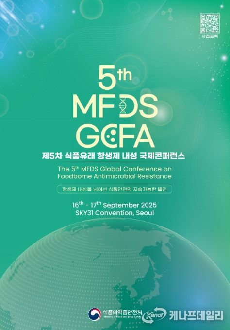 케나프데일리 이은성 기자 | 식품의약품안전처는 ‘항생제 내성을 넘어선 식품안전의 지속 가능한 발전’을 주제로 9월 16일부터 17일까지 스카이31 컨벤션(서울시 송파구 소재)에서 ‘제5차 식품유래 항생제 내성 국제 콘퍼런스(GCFA)’를 개최한다고 밝혔다.