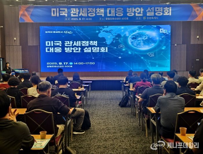 케나프데일리 이은성 기자 | 창원특례시는 17일 관내 수출기업과 유관기관 관계자 200여 명이 참석한 가운데 ‘미국 관세정책 대응 방안 설명회’를 성황리에 개최했다.