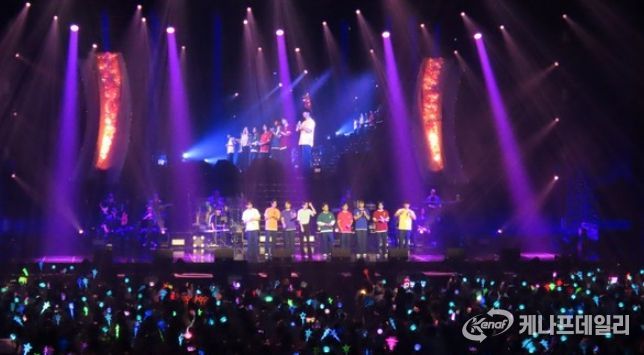 이어서 TOP7이 단체로 무대에 올라 메들리 곡 '정말로' '열정' '찰랑찰랑'을 연달아 부르자 공연장은 다시 신나는 분위기로 들썩이기 시작했다.