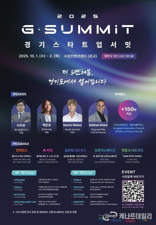 케나프데일리 이은성 기자 | 국내 최고 수준의 글로벌 스타트업 투자 박람회인 ‘경기 스타트업 서밋(G-SUMMIT)’이 오는 10월 1일부터 2일까지 수원컨벤션센터에서 열린다.
