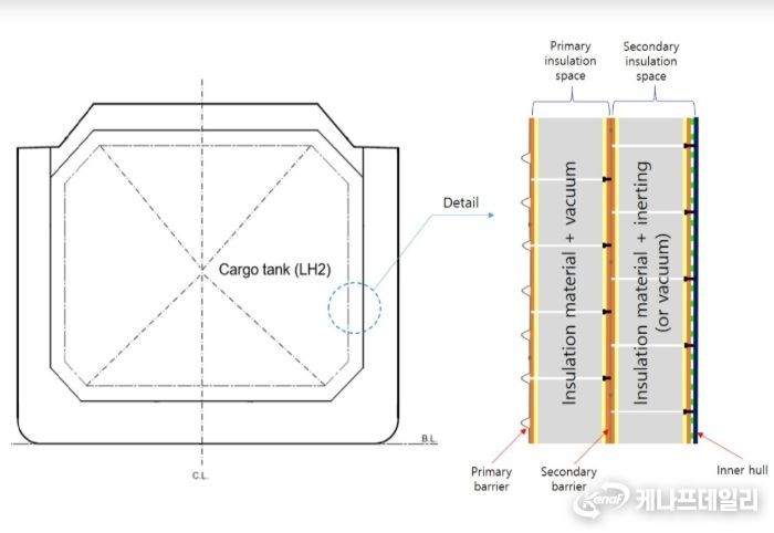 액화수소 운반선은 영하 253℃의 극저온에서 수소를 액화하여 대량 운송하는 고도의 기술이 필요하다. 그간에는 일본업체 등의 주도로 독립형 화물창이 탑재된 액화수소 운반선만 인정받아 왔다.