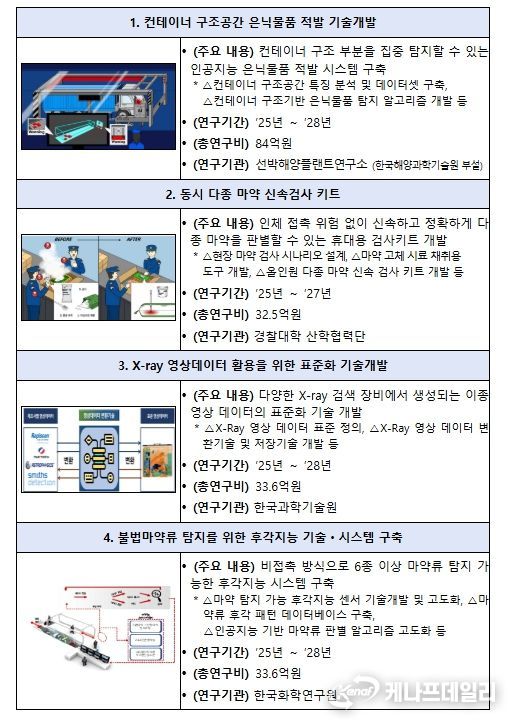 사업의 주요 목적은 △ 인공 지능 관세행정 구현 △ 국민 건강 보호 △ 사회안전 확보로, 세관 직원과 전문가가 연구개발 전 주기에 참여하여 현장의 문제를 진단하고 이를 해결하기 위한 맞춤형 기술개발을 추진하는 데 있다.
