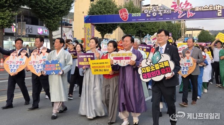케나프데일리 이은성 기자 | 안동시는 2025년 안동국제탈춤페스티벌 원도심 거리 퍼레이드에서 9월 26일, 27일, 28일 세 차례 경북 국립의대 유치를 위한 퍼포먼스를 진행했다. 오는 10월 4일 한 차례 더 진행해, 총 4회의 거리 퍼포먼스에 참여할 계획이다.