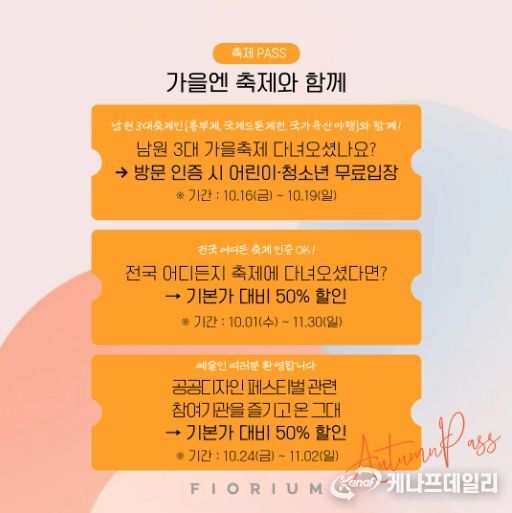 케나프데일리 이은성 기자 | 남원시 미디어아트 전시관 피오리움(Fiorium)이 가을철을 맞아 다양한 무료·할인 혜택을 담은 ‘어텀패스(Autumn Pass)’를 선보인다. 가을시즌 주요 행사와 연계해 시민과 관광객 모두가 즐길 수 있도록 마련됐다.