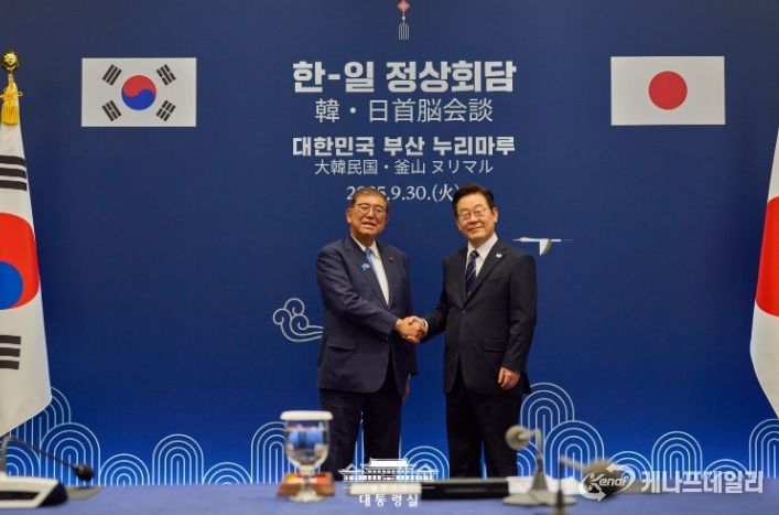 케나프데일리 이은성 기자 | 이재명 대통령은 9월 30일 '이시바 시게루(石破 茂)' 일본 총리와 부산에서 한일 정상회담을 가졌다. 양 정상은 한일 간 실질 협력 강화 방안과 지역 및 글로벌 차원에서의 협력 필요성에 대해 폭넓고 심도 깊은 의견을 교환했다.