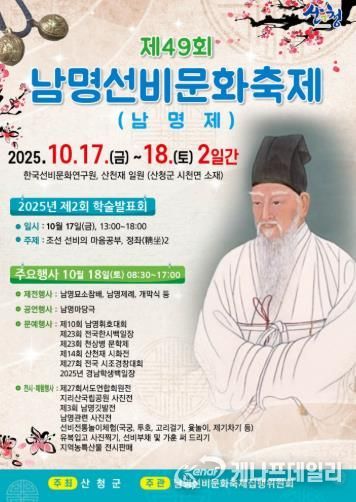 케나프데일리 이은성 기자 | 산청군은 오는 17~18일 시천면에 위치한 한국선비문화연구원에서 ‘제49회 남명선비문화축제’를 개최한다고 14일 밝혔다.