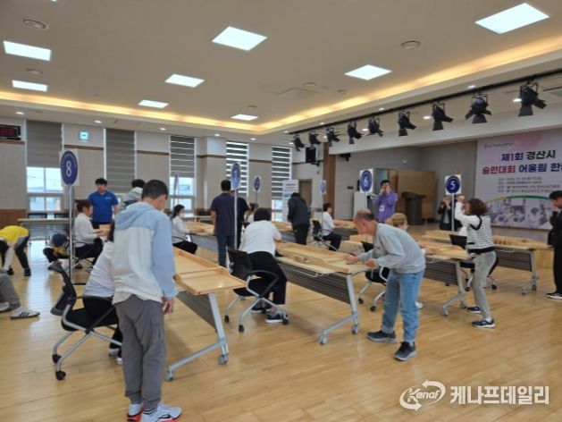 케나프데일리 이은성 기자 | 경산시평생교육지도자협의회는 20일 압량읍 행복발전소에서 어르신 및 장애인 등 150여 명이 참여한 '제1회 경산시 어르신 슐런 대회 어울림 한마당'을 개최했다.