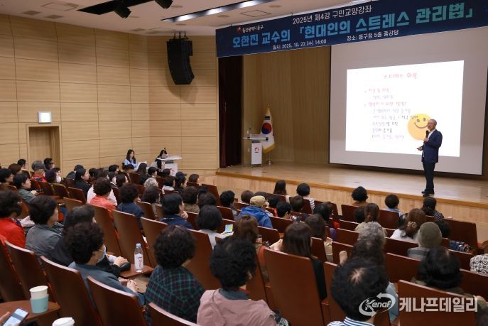 케나프데일리 이은성 기자 | 울산 동구는 10월 22일 오후 2시 5층 중강당에서 오한진 교수의 ‘스트레스 관리법’이라는 주제로 강연을 개최했다.