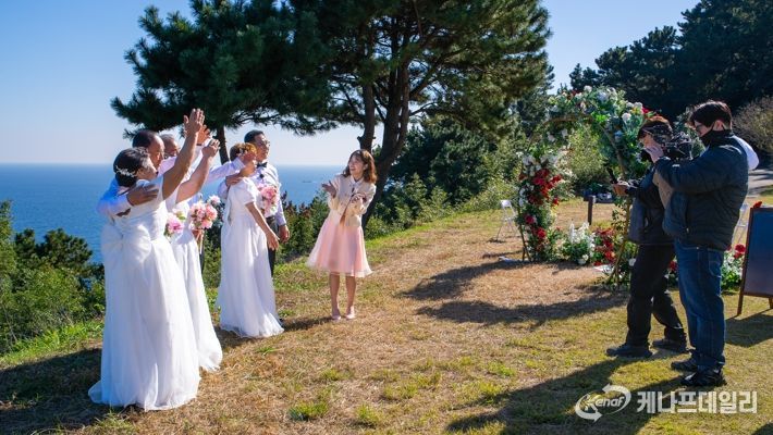 케나프데일리 이은성 기자 | 거제시는 지난 15일, 동백 원시림의 아름다움으로 유명한 지심도에서 ‘2025년 자연과 함께하는 웨딩·휴양섬’의 세 번째 프로그램으로 황혼 부부 3쌍을 초청해 감동적인 리마인드 웨딩과 기념 촬영 행사를 성공적으로 개최했다.