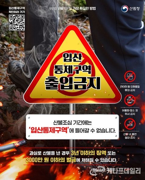 산불조심기간에는 '입산통제구역'에 들어갈 수 없습니다.