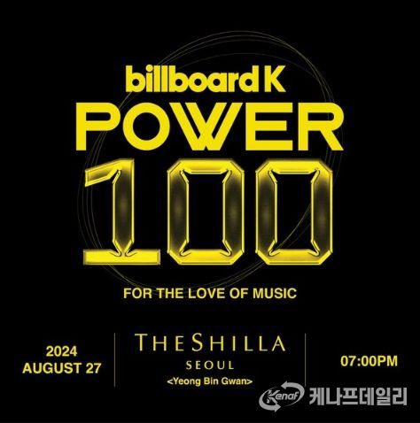 케나프데일리 이은성 기자 | 빌보드 코리아가 오는 8월 27일 서울 신라호텔 영빈관에서 'Billboard K POWER 100'을 개최한다.