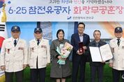 케나프데일리 이은성 기자 | 연수구는 지난 21일 6·25전쟁에 참전해 공을 세운 故이장호 중사 유가족에게 화랑무공훈장과 증서를 전달했다. 故이장호 중사는 6·25전쟁 당시 무공수훈자로 결정됐음에도 전쟁 상황의 긴박함과 전후 혼란함으로 무공훈장을 받지 못했지만, 최근 국방부와 지자체가 협업하는 ‘6·25 무공훈장 찾아주기’ 사업을 통해 훈장을 전달받았다. 이날 6.25 참전유공자회 연수구지회 김명하 회장, 조영림 부회장 등이 참석한 가운데 수여식이 진행됐으며, 故이장호 중사의 아들 이한신 씨는 6·25전쟁 전쟁 때 헌신하신 아버지를 대신해 훈장을 받게 돼 대단히 영광스럽다며, 명예로운 자리에 참석해 주신 모든 관계자분께 감사의 말씀을 전했다. 이재호 연수구청장은 “6.25 참전 유공자분들이 계셨기에 오늘의 자유와 평화로운 대한민국이 있다.”라며 “나라를 수호한 참전유공자의 숭고한 애국정신을 잊지 않고 앞으로도 더 합당한 예우와 지원을 위해 최선을 다하겠다.”라고 말했다.