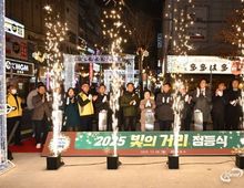케나프데일리 이은성 기자 | 거제시는 지난 12월 8~9일 고현동 신현농협 앞과 옥포 국민은행 앞에서 ‘빛의 거리’ 점등식을 개최했다. 이번 행사에는 변광용 거제시장과 시의원, 지역 상인, 주민 등이 참석해 연말 분위기를 함께 밝혔다. ‘빛의거리’는 연말연시 분위기를 조성하고 활력을 잃은 지역상권에 활기를 불어넣기 위해 기획되어 매년 연말연시 이벤트로 자리매김했다. 올해 빛의거리는 ▲고현동 엠파크거리~고현시장 일원 ▲옥포동 국민은행~수협 일원 ▲장승포동 두모교차로~문화예술회관 삼거리 일원 ▲능포동 시외버스터미널 일원에 조성됐으며, 내년 2월 말까지 운영될 예정이다. 상징 게이트를 비롯해 다양한 LED 조명, 크고 작은 눈 결정체, 트리 조명 장식 등이 거리 곳곳을 밝히며 시민들의 발검음을 멈추게 할 만큼 화려한 야경을 선사한다. 변광용 시장은 “경기침체로 지친 시민 여러분께 따뜻한 위로가 되길 바란다”며 “빛의 거리가 많은 분들이 찾는 명소가 되어 지역상권에도 새로운 활력이 생기길 기대한다”고 말했다. 이어 “연말연시를 맞아 시민 여러분의 하루하루가 빛의 거리처럼 밝고 활기차길 바라며, 다가오는 새