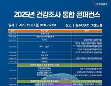 케나프데일리 이은성 기자 | 질병관리청은 12월 8일 청주 오스코에서 국가건강조사 간 연계·활용 촉진 및 향후 발전 방향 논의를 위해 '2025 건강조사 통합 콘퍼런스'와 '우수학술 논문 발표대회'를 개최한다. 질병관리청은 초고령사회 대비 국민 건강 보호를 위해 만성질환 예방관리 및 조사·감시 사업을 수행하고 있으며, 특히 지역사회건강조사, 국민건강영양조사와 같은 국가건강조사를 통해 국민의 건강행태 및 만성질환 유병 수준 등을 파악하여 국가 건강정책 수립·평가에 필요한 근거자료를 생산하고 있다. 이번 콘퍼런스는 만성질환 예방관리 및 국가건강조사 분야의 전문가와 건강조사를 직접 수행하고 있는 책임대학, 지방자치단체 담당자 등 약 600여 명이 참여하며, 질병관리청에서 수행하고 있는 국가건강조사들의 주요 결과를 공유하고 분야별로 학계 및 유관기관 전문가 의견을 수렴하고 향후 발전 방향을 논의하기 위해 마련됐다. 2025 건강조사 통합 콘퍼런스 제1부 행사는 임승관 질병관리청장의 기념사를 시작으로 유공 포상, 기조강연, 그리고 2025년 건강조사 주요 결과 순으로 진행된다. 유공 포상은 지역사회건강조사, 국민건강영양