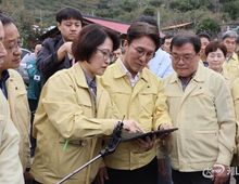 케나프데일리 이은성 기자 | 김민석 국무총리는 10월 19일 오후, 올해 3월 21일에 발생한 대형산불에 이어 지난 7월 16일부터 나흘간 내린 집중호우로 큰 피해를 입은 경상남도 산청군을 방문했다. 현장에는 이승화 산청군 군수, 정영철 산청군 부군수, 박명균 경남도청 행정부지사, 천성봉 경남도청 도민안전본부장, 김광용 행정안전부 재난안전관리본부장, 이미라 산림청 차장 등이 동행했다. 김 총리는 먼저 시천면 상지마을을 방문하여 정영철 산청군 부군수로부터 산불 피해 및 복구 현황을 보고 받고 난 뒤, 현장 곳곳을 확인하며 복구계획을 점검했다. 산청군에서 건의한 산불 피해 청년농업인 대출, 재해보험 확대 등의 어려움에 대해서는 정부가 적극 검토해 지원 방안을 마련하겠다고 답했다. 김 총리는 검게 그을린 산자락만 보아도 마을주민들이 급박하게 대피하는 모습이 눈앞에 그려지는 것 같다고 안타까움을 전하고 다시는 우리 국민께서 삶의 터전을 두고 대피하시는 일이 없도록 정부와 지자체가 만반의 준비를 하겠다고 강조했다. 이어, 산사태 방지를 위한 사방댐의 역할에 대해 묻고, 산림청 차장에게 “향후