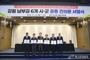 케나프데일리 이은성 기자 | 강원 남부권 6개 시군(원주·횡성·영월·평창·정선·태백)은 24일 오전 11시, 호텔인터불고 원주에서 국토교통부의 ‘제7차 공항개발 종합계획’에 ‘원주(횡성)공항의 국제화 사업 반영’을 요청하는 공동 건의문을 채택했다. 이날 서명식에는 원강수 원주시장, 김명기 횡성군수, 이상호 태백시장, 최명서 영월군수, 심재국 평창군수, 최승준 정선군수 등 강원 남부권 6개 시군의 시장·군수가 모두 참석해 원주(횡성)공항 국제화 추진에 뜻을 모았다. 이번 공동 건의문 채택은 원주(횡성)공항 국제화가 침체된 강원 남부권 경제를 되살리고 공동 번영을 이끌 핵심 인프라라는 인식을 공유하고, 이에 대한 정부의 적극적인 지원과 조치를 요청하기 위해 마련됐다. 건의문의 주요 내용은 ①강원 남부권의 절실한 지역 현안과 새로운 돌파구 필요성 ②원주(횡성)공항의 경제적 파급 효과 ③국토교통부의 선제적 결단 촉구 등이며, 강원특별자치도를 통해 국토교통부에 전달될 예정이다. 원주(횡성)공항의 시설 개선으로 국제선 유치 여건이 갖춰지면, 강원 남부권 지역 경제 활성화는 물론, 수도권과 비수도권 간 격차