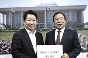 케나프데일리 이은성 기자 | 김영환 지사가 2026년도 정부예산 확보를 위해 연일 국회를 오가며 ‘광폭 행보’를 이어가고 있다. 김 지사는 11월 14일 국회를 방문해 한병도 국회 예산결산 특별 위원회 위원장, 박형수 국민의힘 예결위원회 간사, 김도읍 국민의힘 정책위의장을 차례로 만나 충북도의 주요 핵심사업이 국회 증액 심의 과정에서 반영될 수 있도록 적극 건의했다. 이번 방문은 지난 11월 5일 국민의힘 충청권 예산정책협의회, 11월 12일 지역 국회의원 예산정책협의회와 송언석 국민의힘 원내대표 면담에 이은 세 번째 일정으로, 김 지사는 충북의 주요 현안사업과 지역 균형발전을 위한 국비 지원의 필요성을 설명했다. 이날 중점적으로 건의한 사업은 다음과 같다. ▲청주국제공항 민간전용 활주로 건설(사전타당성조사 용역비 5억 원) ▲KAIST 부설 충북 AI BIO 영재학교 설립(공사비 등 147억 원) ▲미호강(국가하천) 홍수예방사업(설계비 20억 원) ▲충주댐 수력기반 그린수소 인프라구축(설비공사비 등 56.4억 원) ▲제천(청풍호) 내륙 국가어항 지정(설계비 15억 원) ▲청주 남이 부용외천 ~ 양촌(국도 1