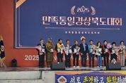 케나프데일리 이은성 기자 | 경상북도는 22일 영주시 풍기인삼문화팝업공원에서 민족통일협의회 경상북도 주관으로 ‘2025 민족통일 경상북도대회’를 개최했다. 행사에는 김진현 경북도 안전행정실장, 배진석 도의회 부의장, 유정근 영주시장권한대행, 도재영 민족통일 중앙협의회 의장, 박종호 민족통일경상북도협의회장, 김추길 민족통일 전남회장을 비롯한 시군지회 회원 700여 명과 풍기인삼축제현장을 찾은 많은 관광객과 어울려 뜻깊은 행사를 했다. 행사는 식전 공연을 시작으로, 한반도 평화를 위한 결의문을 회원들과 함께 낭독하고, 이어서 지역사회 및 통일 안보에 이바지한 우수 유공자들에게 도지사 표창을 비롯한 다양한 상패가 수여되며 행사 분위기를 한층 고조시켰다. 특히, 행사 마지막에는 참가자 전원이 함께 ‘우리의 소원은 통일’을 합창하며, 평화통일의 필요성과 중요성을 다시 한번 되새기는 뜻깊은 시간으로 마무리됐다. 박종호 민족통일 경상북도협의회장은 대회사를 통해 “확고한 국가관과 투철한 사명감을 바탕으로 민족의 염원인 조국의 평화통일을 실현할 수 있도록 도민들의 적극적인 참여와 성원”을 당부했다. 김