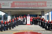 케나프데일리 이은성 기자 | 충북 진천군은 5일 진천군청 중앙현관에서 충북사회복지공동모금회와 함께 ‘희망2026나눔캠페인’ 사랑의 온도탑 제막식과 현장순회모금 행사를 개최했다. 사랑의 온도탑 제막식은 나눔 캠페인의 시작을 알리고 따뜻한 나눔 분위기를 조성해 군민들의 기부 참여를 독려하고자 마련됐다. 현장에는 송기섭 진천군수, 이재명 군의회 의장을 비롯한 관내 기관 단체장들과 기부자 등 100여 명이 참석했다. 이날 현장순회모금 전달식에서는 대한노인회 진천군지회(지회장 박승구)가 3천700여만원을, 진천군 노인복지관 직원 일동이 100여만원을 기탁했다. 또 경인이피에스에서 다용도 발판 1,000개를, 진천중학교 선생님, 학생들은 직접 담근 김장김치 50kg을, 우미린 어린이집에서는 군고구마 판매수입금 82만원을 기탁하며 온기를 나눴다. 이번 모금은 오는 2026년 1월 31일까지 진행되며, 모금된 성금은 긴급지원, 냉난방비 지원 등 관내 취약계층 지원을 위해 쓰일 예정이다. 기부를 원하는 진천군민은 누구나 진천군 성금계좌 또는 읍면 행정복지센터를 통해 모금에 참여할 수