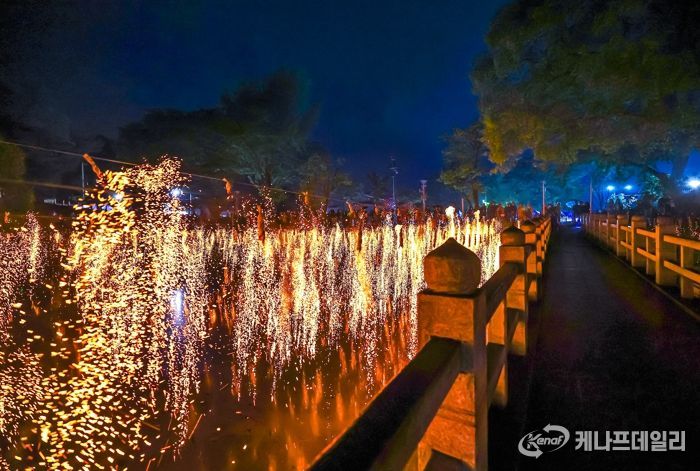 케나프데일리 이은성 기자 | 함안 무진정 연못 위로 불꽃이 떨어진다. 곳곳에서 탄성이 터지다가, 이내 조용한 침묵이 감돈다. 바람결 따라 떨어지는 낙화봉의 불씨는 6500여 명 관람객의 가슴 깊이 번져갔다. 5일 무진정 일원에서 열린 이번 행사는 세계에서 유일한 ‘함안 낙화놀이’의 미학을 보여주며 방문객들에게 잔잔한 감동을 선사했다.