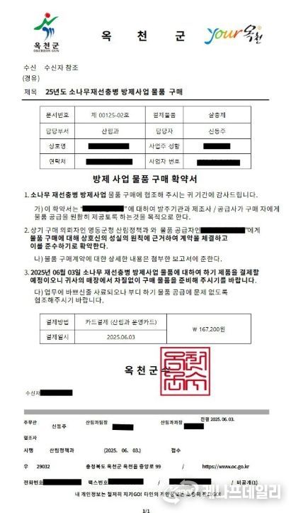 또한 이와 유사한 의심스러운 요청을 받았을 경우, 반드시 옥천군 행정팀으로 연락해 해당 부서 주무관의 실명 및 연락처를 확인할 것을 당부했다.