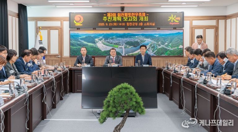 케나프데일리 이은성 기자 | 합천군은 9월 23일 군청 2층 소회의실에서 제3회 합천황토한우축제 추진계획 보고회를 열었다. 이번 보고회는 합천축산업협동조합(조합장 김용욱)이 주최·주관하고 합천군과 합천군의회가 후원하는 행사로, 축제의 성공적 개최를 위해 진행 상황을 점검하고 부서 간 협력 체계를 공고히 하기 위해 마련됐다.