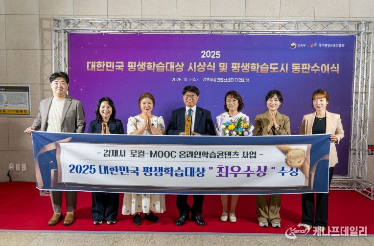 케나프데일리 이은성 기자 | 김제시가 생활 속 평생학습을 실천하고 있는 우수사례를 발굴해 시상하는 '제22회 대한민국 평생학습대상'에서 '디지털 학습시대 무형의 학습자산을 만드는 김제형 로컬-MOOC 구축사업'으로 올해의 평생학습사업 최우수상을 받았다.