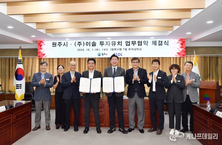 케나프데일리 이은성 기자 | 원주시는 10월 1일 오후 2시, 시청 7층 투자상담실에서 ㈜이솔(대표 김병국)과 투자유치 협약(MOU)을 체결했다. 이번 협약은 총 505억 원 규모의 투자로, 부론일반산업단지에 소형 방사광가속기와 첨단 EUV 반도체 검사장비 연구·생산시설을 구축하는 사업이다. EUV(Extreme Ultra-Violet)는 반도체 초미세 공정(7nm 이하)에 필수적인 광원이다.
