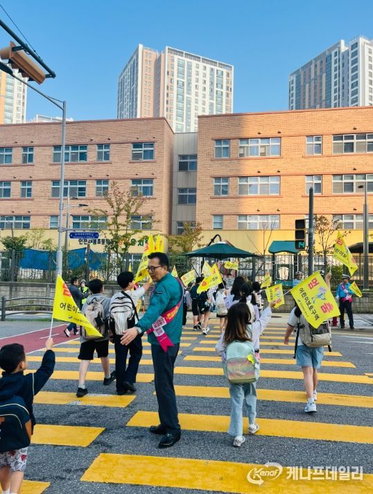 케나프데일리 이은성 기자 | 연수구는 지난달 30일과 10월 1일 은송초등학교와 새봄초등학교 앞 스쿨존 횡단보도에서 ‘어린이 교통안전 깃발 캠페인’을 실시했다.