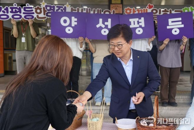이날 현장에서는 실생활에서 사용할 수 있는 줄자 등 홍보 물품을 나눠주며, 성평등 실천 메시지와 대덕구의 저출생 대응 정책을 함께 안내했다.