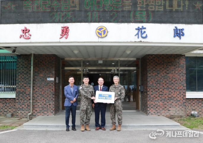 케나프데일리 이은성 기자 | 옥천군 통합방위협의회가 2일 육군 제111보병여단과 제2201부대 1대대를 찾아 지역방위를 위해 고향을 찾지 못하는 군 장병과 일일이 악수를 나누며 격려하고 군 장병들에게 감사의 마음을 전했다.