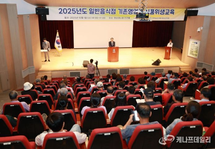 케나프데일리 이은성 기자 | 화순군과 (사)한국외식업중앙회 전라남도지회 화순군 지부(지부장 이향심)는 지난 10월 1일 하니움스포츠문화센터 만연홀에서 관내 일반음식점 영업주 200여 명을 대상으로 '2025년도 일반음식점 영업자 위생교육을 진행했다.