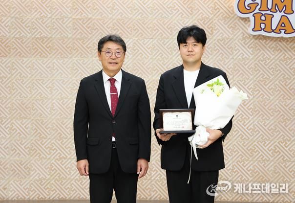 케나프데일리 이은성 기자 | 김해시는 2일 오전 김해시청 대회의실에서 친환경 생활가전 제조업체인 ㈜비앤테크 방용휘 대표에게 ‘10월 자랑스러운 김해 CEO상’을 수여했다고 밝혔다.