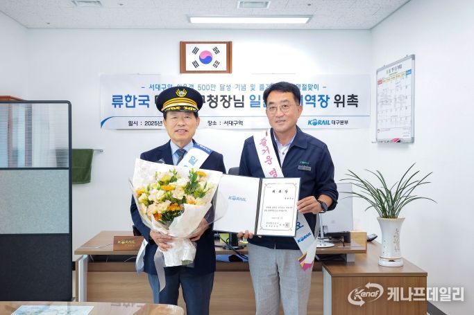 이날 류한국 서구청장은 서대구역 ‘일일 명예역장’으로 위촉되어 업무보고, 매표 체험, 안전 점검, 고객 감사 인사 등을 수행하며 철도 현장의 주요 역할을 직접 체험했다.
