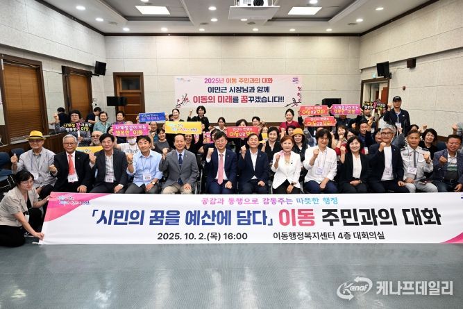 행사는 ▲시장 인사와 시정 운영계획 공유 ▲이동 지역 현황 설명 ▲주민 건의사항 청취 및 답변 ▲현장 방문 순으로 진행됐다. 이 시장은 주민들에게 시의 정책 방향과 이동 지역 발전 비전을 직접 설명하며 소통의 폭을 넓혔다. 이어 주민들의 질의와 건의에 적극 답변한 뒤, ‘현답버스’를 타고 주민들과 함께 이동 완충녹지 민원 현장을 방문해 개선 방안을 논의했다.