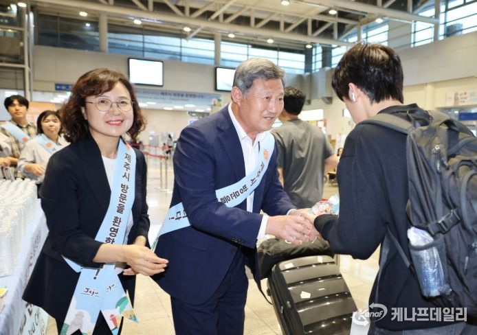 케나프데일리 이은성 기자 | 김완근 제주시장은 2일 제주항국제여객터미널에서 추석 황금연휴를 맞아 제주를 찾은 귀성객과 관광객을 환영했다.