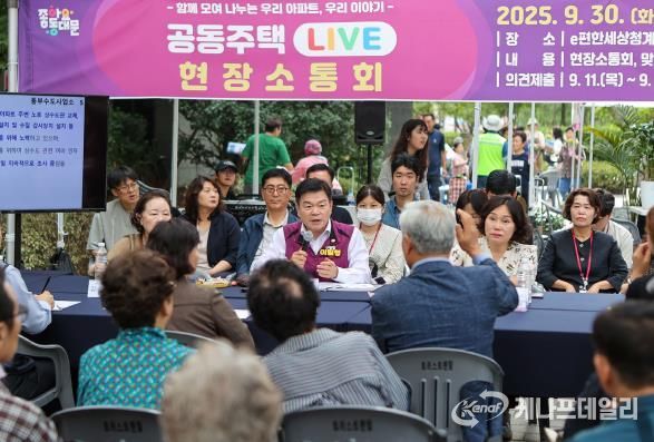 케나프데일리 이은성 기자 | 서울 동대문구는 지난 30일 e편한세상 청계센트럴포레 아파트에서 ‘2025 공동주택 LIVE 현장소통회’를 개최했다. 지난 6월 래미안미드카운티에서 열린 첫 소통회에 이어 두 번째로 마련된 이번 행사는 구청장이 직접 현장을 찾아 입주민과 소통하며 공동주택 현안을 논의하는 자리로 진행됐다.