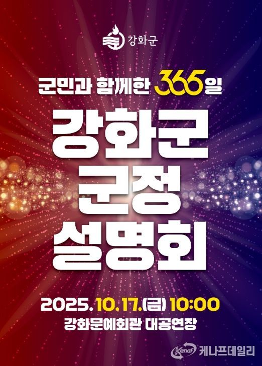 케나프데일리 이은성 기자 | 강화군은 오는 10월 17일 오전 10시 강화문예회관에서 “군민과 함께한 365일, 강화군 군정 설명회”를 개최한다.