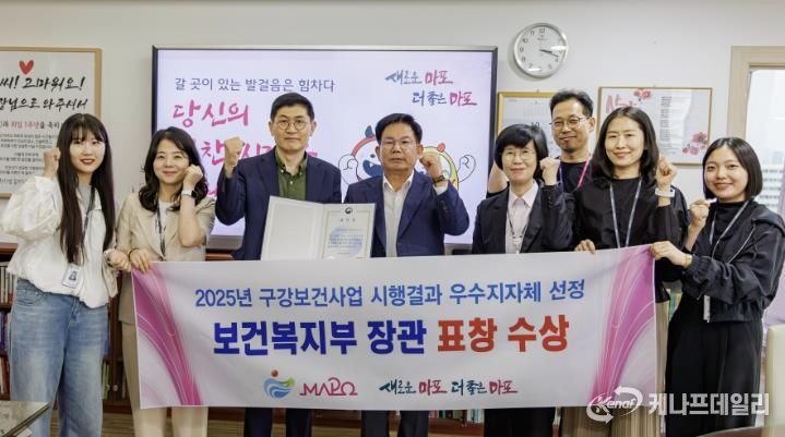 케나프데일리 이은성 기자 | 마포구는 지난달 26일, 보건복지부와 한국건강증진개발원이 주관한 ‘2025년 지역사회 구강보건사업 성과대회’에서 우수기관으로 선정돼 보건복지부 장관상을 수상했다.