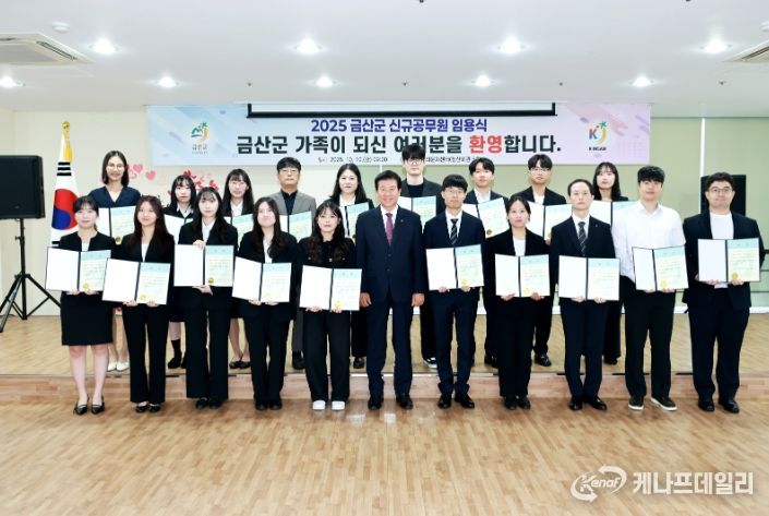 케나프데일리 이은성 기자 | 금산군은 지난 10일 금산읍 청산회관에서 2025년도 신규공무원 임용장 수여식을 개최했다.